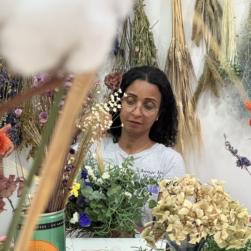 Sauce Llorona, creado por Clara, ofrece arreglos florales personalizados con flores secas, diseños modernos y armoniosos, decoración para eventos, talleres creativos y suscripciones florales, siempre con un enfoque en la sostenibilidad.